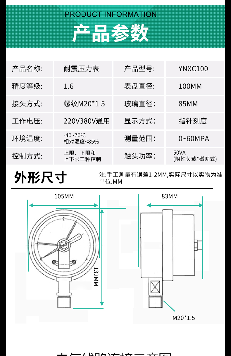 YNXC-100耐震磁助式電接點(diǎn)壓力表