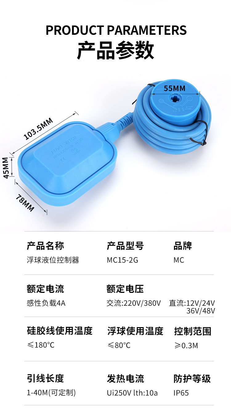 耐腐蝕硅膠線液位浮球開關(guān)